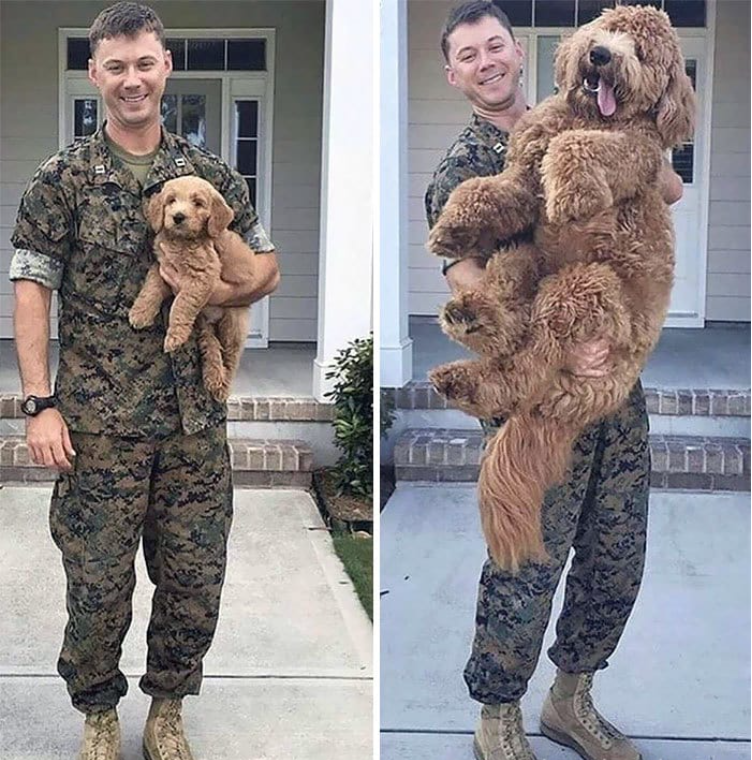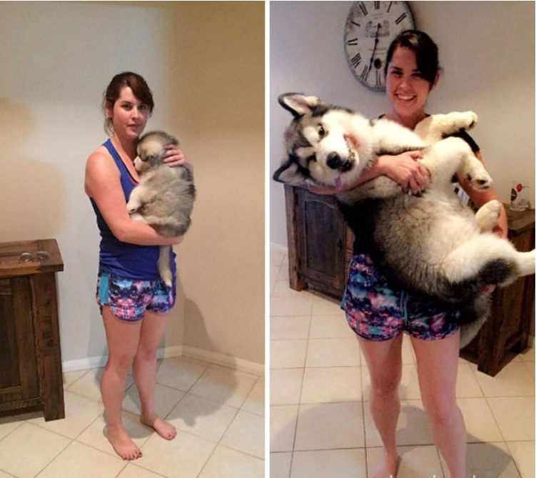 20 Adorable Transformation Photos Of Pets Growing Up Next To Their Owners