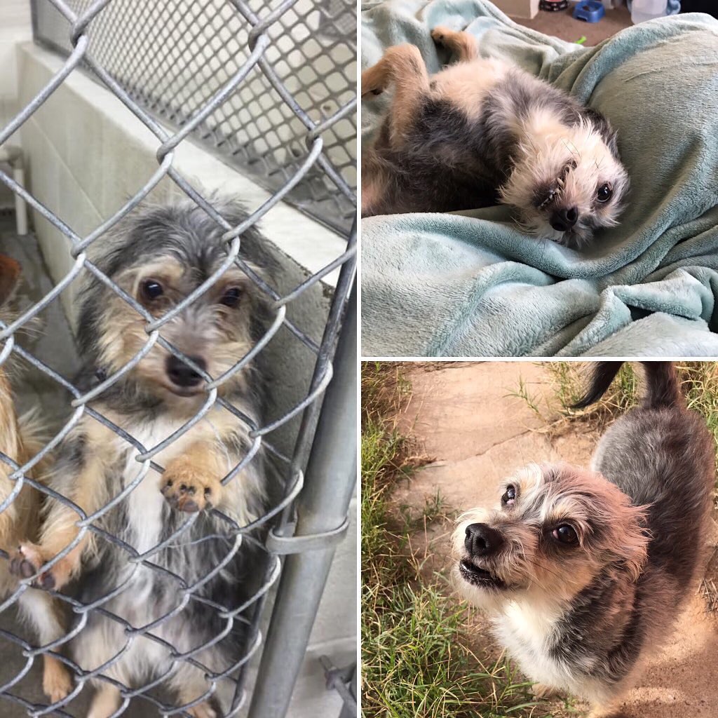 IGThese before and after pictures of Lucy were taken the same day. She spent the night prior outside without shelter during a storm. The owner refused to release her to a rescue. However, after being offered $150, she accepted.