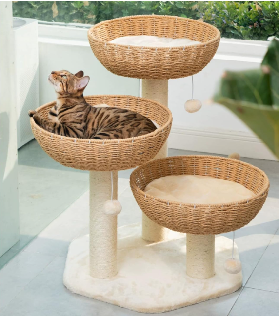 They are crafted using high-quality materials such as durable wood or natural fibers, ensuring long-lasting use and resistance to scratching or wear. Moreover, modern cat trees are equipped with various levels, perches, hideaways, and scratching posts to accommodate every aspect of a cat's innate needs - climbing, scratching, playing, and resting. This multifunctionality ensures that these trees provide not only physical exercise but also mental stimulation for cats.