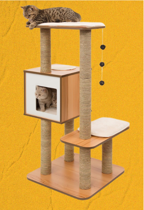 The Vesper modern cat tree has gained immense popularity among cat owners in the United States, and rightfully so. This exquisite and functional line of cat furniture is meticulously crafted to meet the daily activity requirements of even the most discerning felines. The contemporary cat tower features a spacious cube with multiple exits, providing your beloved pet with ample opportunities to unwind or engage in playful antics.