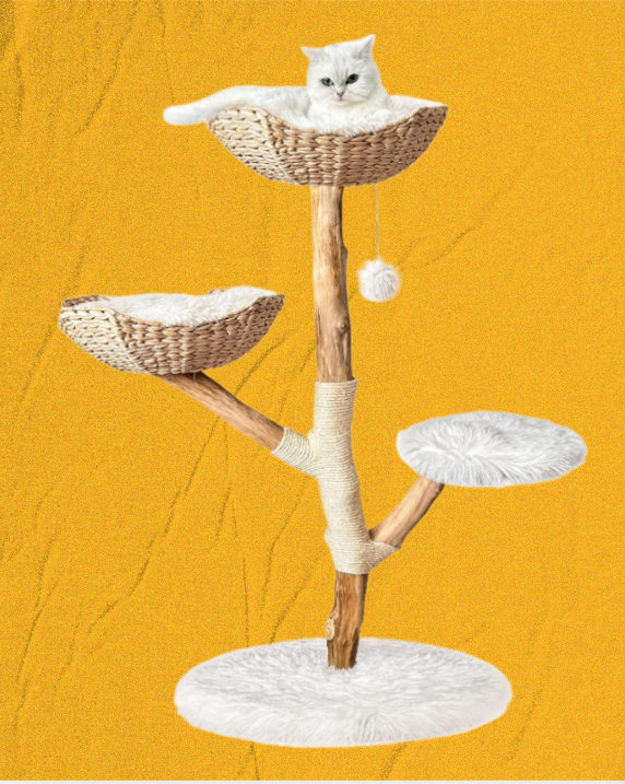 This exquisite handmade aesthetic cat tree features real wood branches that add a touch of uniqueness to your feline's playground. Rest assured, this tree is equipped with a robust 23.62-inch diameter heavy-duty base, ensuring utmost sturdiness and stability.