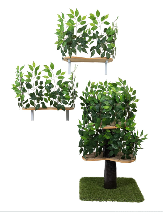 When you place an order for this product, you will receive a unique two-platform cat tree adorned with leaves, along with two cat wall shelves, also featuring leaf designs. This distinctive feature sets this product apart from its predecessor. Notably, both the cat tree and the two shelves provide a cozy spot for multiple feline friends to unwind, or alternatively, allow a single kitty to gracefully leap from shelf to shelf.