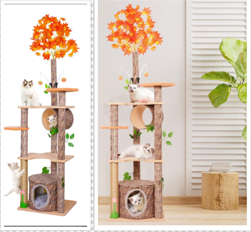 In summary, this cat tree is a testament to both functionality and aesthetics. Its captivating design, inspired by the beauty of the forest, elevates it to a league of its own. With its plush velvet material, sturdy construction, and an array of engaging features, this cat tower is the epitome of luxury and comfort for your beloved feline companions.