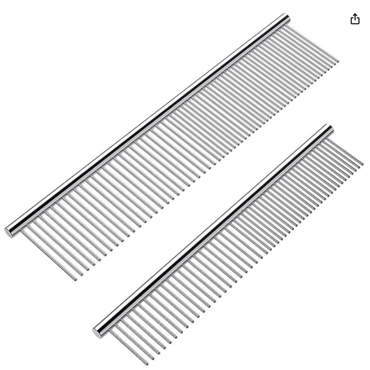 Frequent combing helps prevent mats from forming, ensuring your Miniature Schnauzer's coat stays healthy and smooth. Dog combs are valuable grooming tools for detangling and removing mats from your dog's fur. They have closely spaced teeth that work through knots effectively. In addition, they prevent discomfort and maintain a neat appearance. It's widely recommended that you use a dog comb along with a pin or slicker brush while brushing your Miniature Schnauzer. The Cafhelp 2 Pack Dog Combs are an excellent choice because they feature rounded ends that are gentle to the skin. The comb removes tangles, mats, and loose hair. Moreover, it’s perfect for promoting blood circulation and skin massage.