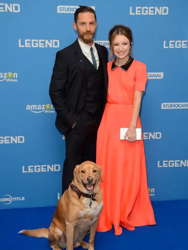 English actor Tom Hardy appears with his dog Woody during the World Premiere of 'Legend.' Hardy has a lifelong love for dogs. According to Wales Online, Hardy fundraises Battersea Dogs and Cats Home of which he is an ambassador. In addition, Hardy occasionally babysits dogs and helps to rehome animals.