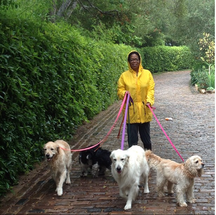 Oprah Winfrey and her three Golden Retriever dogs, Luke, Layla and Gracie
