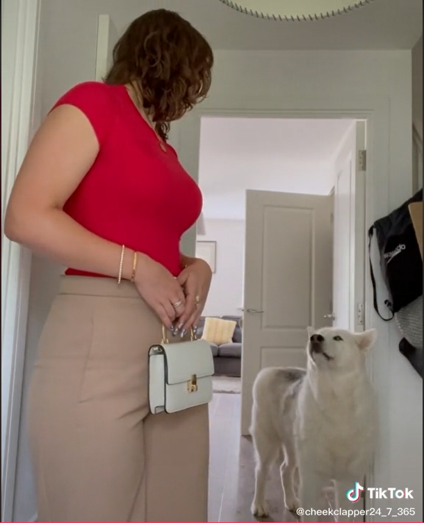 The 14 seconds video shows Lucy recording her outfit of the day when she is completely caught off-guard by her fur baby who asked what sounded like a question!