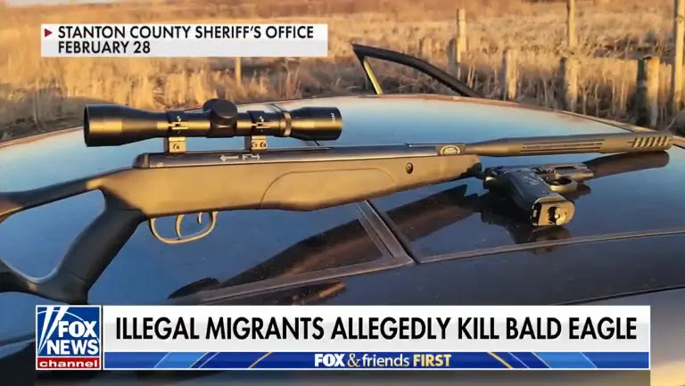 Two illegal migrants from the Republic of Honduras were busted on Tuesday in Nebraska after shooting and killing a North American bald eagle with the intention of cooking and eating it. The two men, who only spoke Spanish, told authorities through an interpreter app that they taught the bird was a vulture.