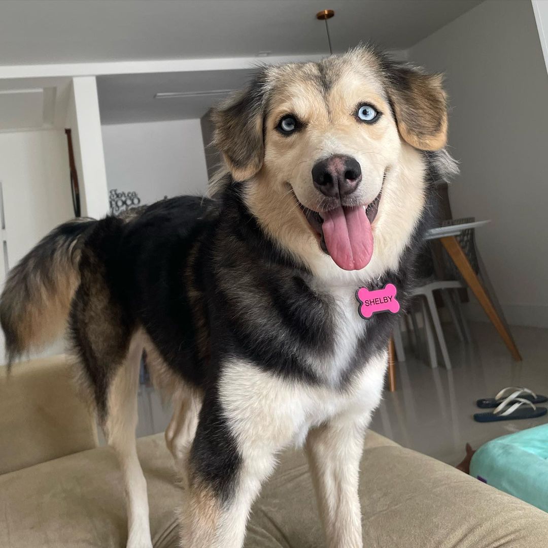 @shelbygoberianThe Goberian is an offspring of a Golden Retriever and a Siberian Husky. Goberians are smart, large, and energetic dogs that are easy to train. They weigh up to 90 pounds and measure up to 24 inches in height.