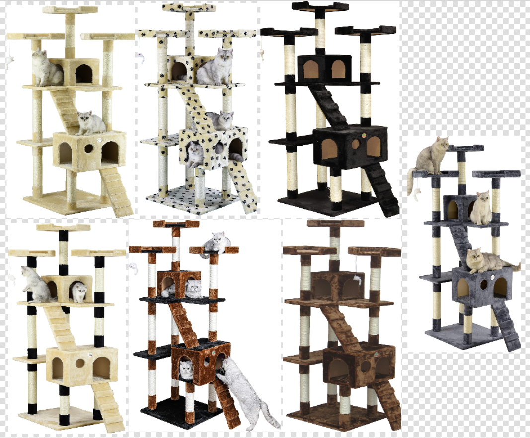 This luxurious cat tree will offer your two adorable and playful cats a cozy home of their own to climb, scratch, play, take a nap or jump around. In fact, this beautiful cat tree is sure to be your two felines' dream come true. The tree's top perches have raised edges, which will allow your two cats to rest on their head while watching over the house.