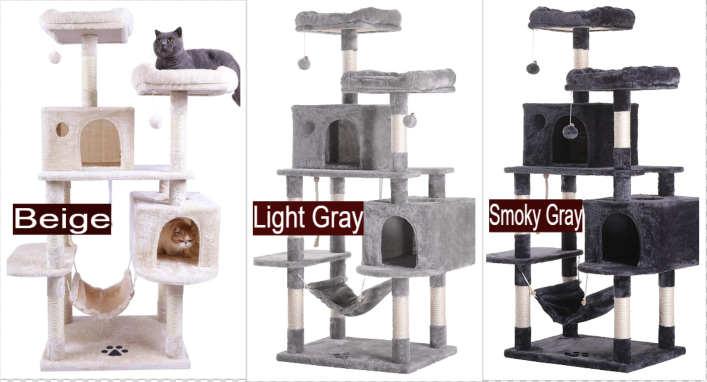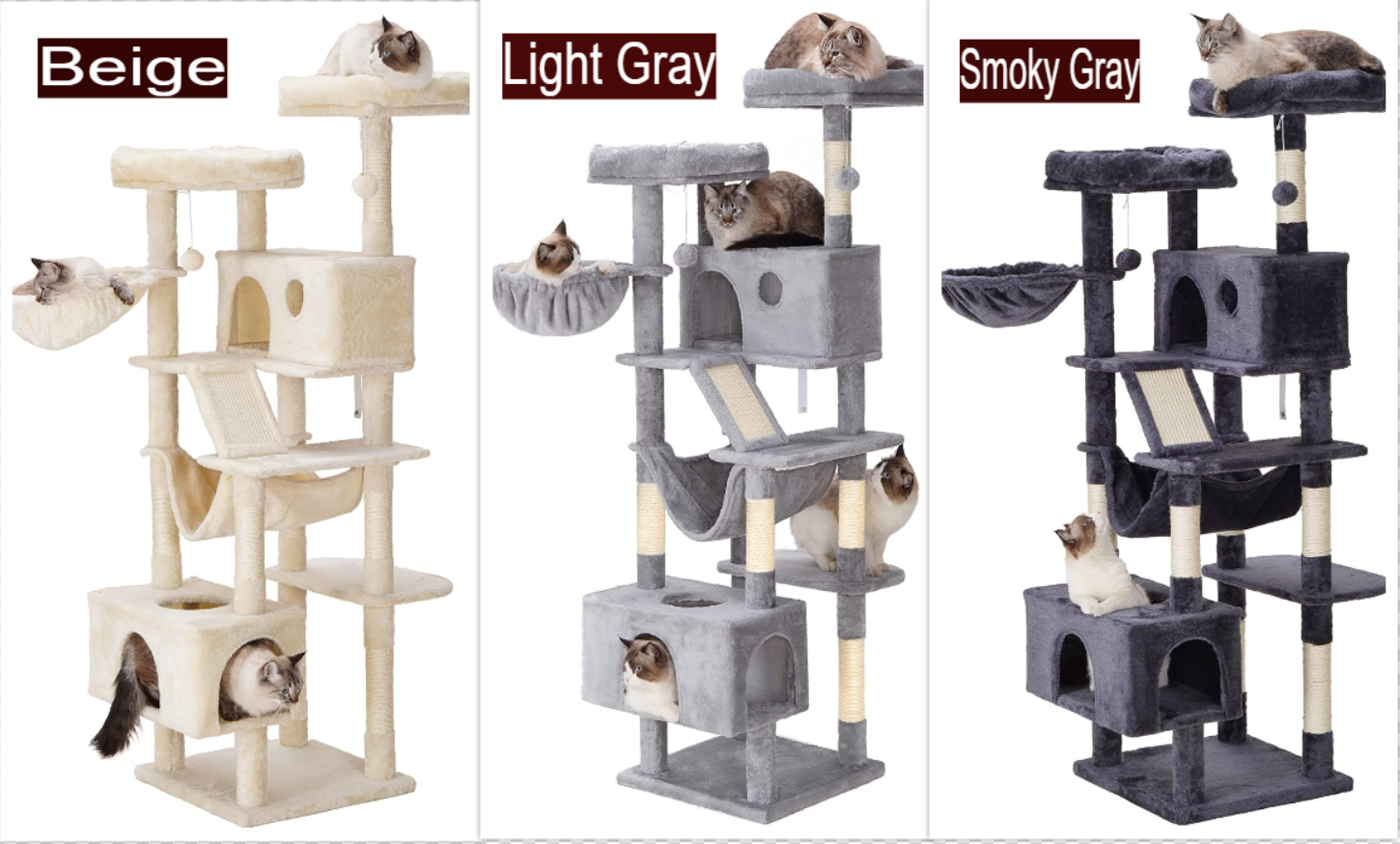 Standing 69 inches tall, this cat tree is another perfect choice for your two large cats. The tree currently has a 4.7-star rating for value for the money and 4.4 stars for easy to assemble and sturdiness. This cat tree is supported by sturdy posts and an enlarged baseboard to avoid wobbling or tipping over. To ensure overall stability, the tree is strengthened with battens and includes anti-toppling fittings, so your two cats can safely climb up and down. Furthermore, the tree comes in three different colors, Beige, Light Gray, and Smoky Gray, to perfectly coordinate with your interior decoration.