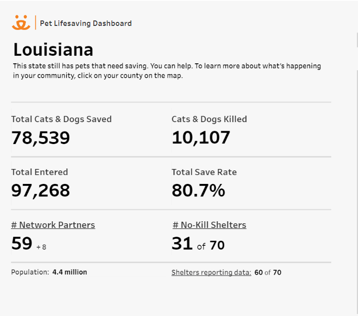 According to Best Friends Animal Society, more than 10,000 dogs and cats were killed in animal shelters across Louisiana in 2022.