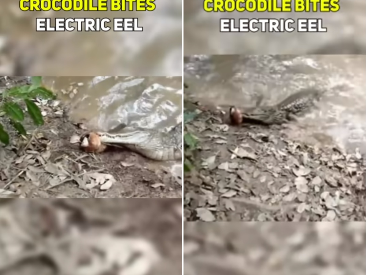 The video begins with the crocodile launching a ferocious attack on the electric eel in a muddy water, where electric eels naturally live in the north-east of South America. Normally, a crocodile would seize its prey and drag it beneath the water, swiftly ending its life. However, this particular encounter takes an unexpected turn, as the eel unveils its own formidable defenses.