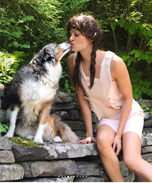Danish model Helena Christensen owns a blue merle Australian Shepherd dog named Kuma. She is rarely seen without her beloved Aussie. On the dog's 5th birthday, Christensen took to Instagram to gush about how "smart, loyal, protective, incredibly loving and more than anything, very funny" Kuma is. Christensen said she was going through a rough time when she got the dog and it pretty much saved her spirit.