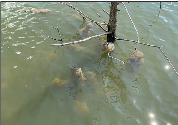 Pictures of the eerie 'alien egg pods' quickly spread online, showing large, jelly-like balls with a hard exterior hanging from submerged tree branches. The unusual appearance of these creatures led many to believe that they were straight out of a science fiction movie. Theories and speculations ran wild, with some even suggesting that these pods could be alien eggs waiting to hatch.