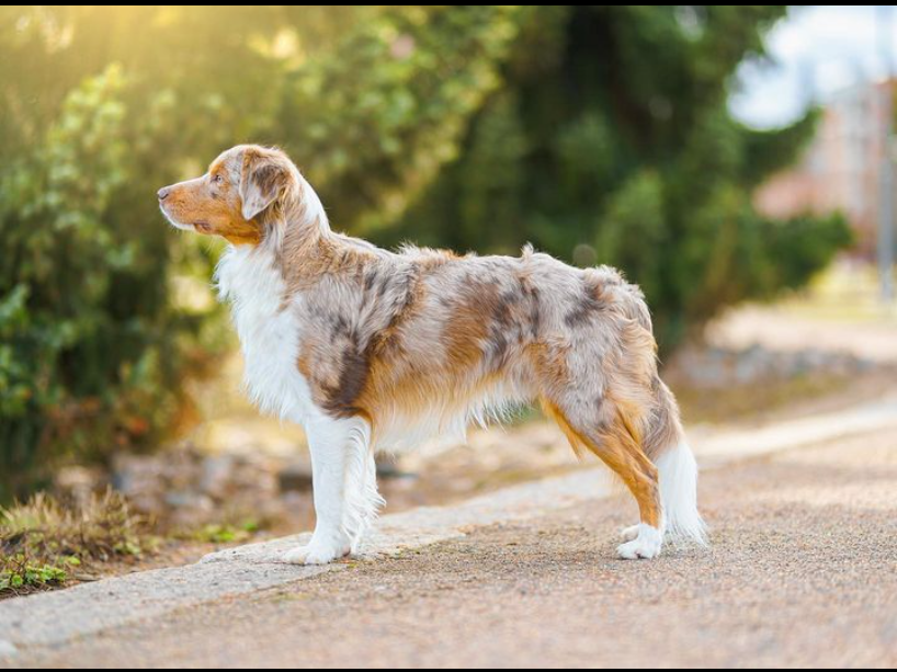 The Australian Shepherd is a medium-sized breed of herding dog developed in the U.S., despite its name. Legend has it that the breed's ancestors, English sheepdogs, came to the U.S. through Australia, hence the name. Australian Shepherds were originally bred to herd cattle and therefore don't make good guard dogs. They are the cowboy's herding dog of choice and are described by the AKC as the "picture of rugged and agile movers of stock." When kept as pets, Australian Shepherds are known for forming strong attachments to their owners and being protective of them. They are generally healthy dogs with a life expectancy of 13 to 15 years.