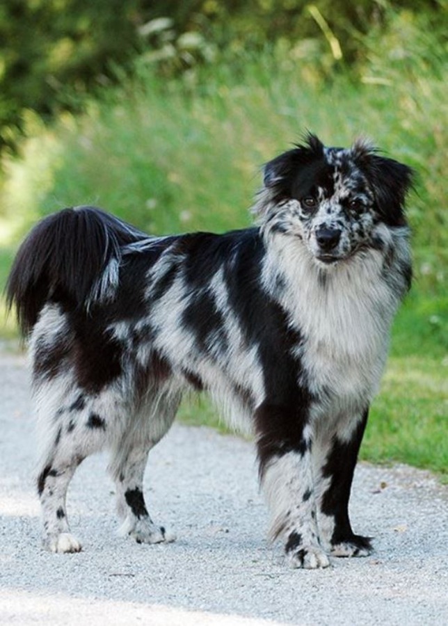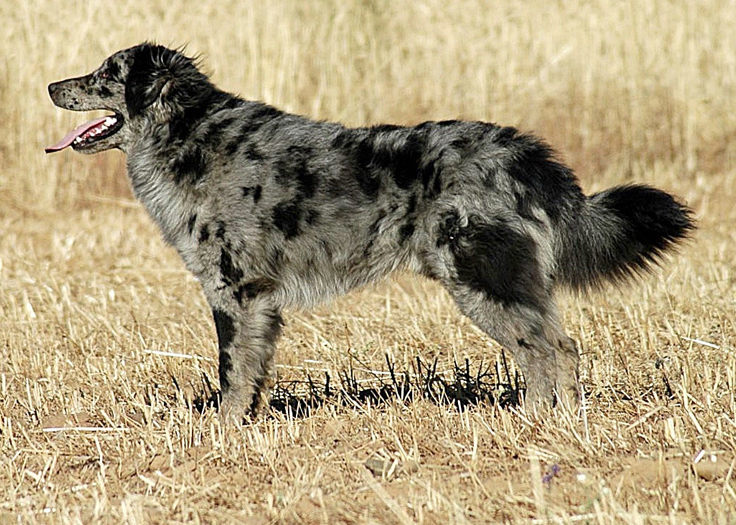 Known in English as the Leonese Sheepdog, the Carea Leonés is a European herding dog with the merle gene. They have a smooth, short, or moderate length and slightly wavy coat. Their coat colors range from black to dark liver or merle with white and or tan trim. Legend has it that Carea Leonés are among Australian Shepherds' ancestors.