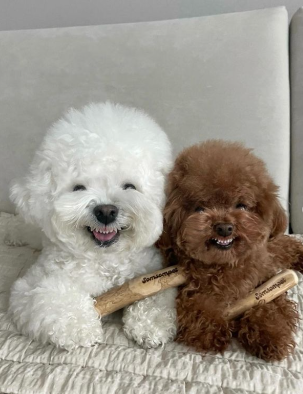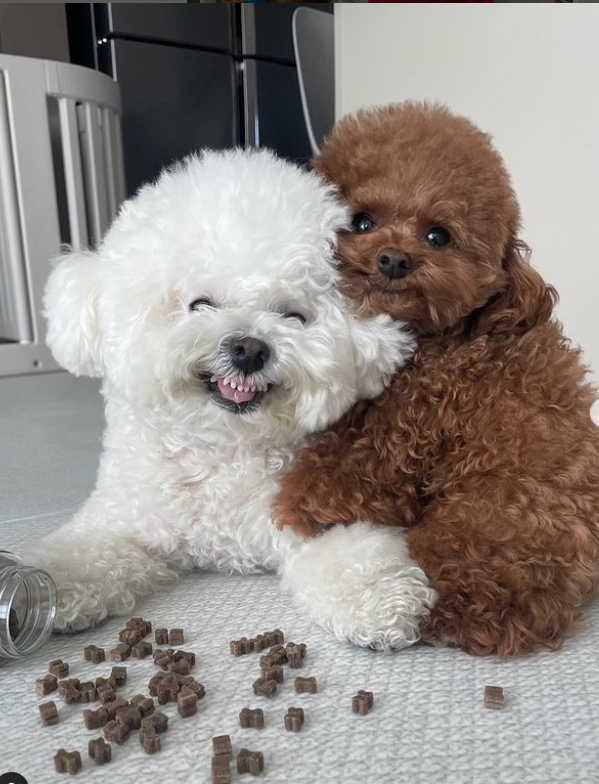 The Bichon Frisé is a Franco-Belgian breed of small toy dog with a white coat and a contagious smile. This dog is described as "a fluffy, smiling puff of cloud." The two pups in the above pictures are two adorable Bichon Frisés lighting up the internet with their adorable smile. The Bichon Frise is a very biddable and eager-to-please dog breed.