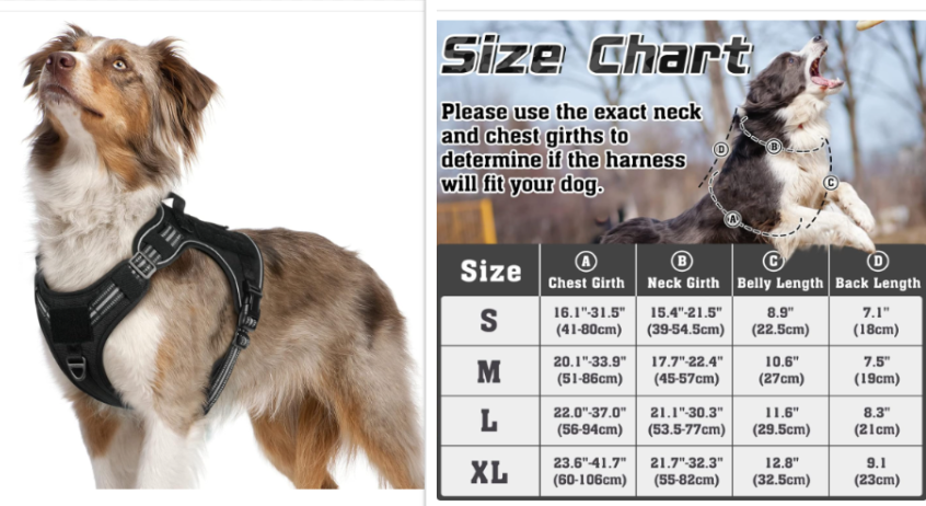 Designed with soft breathable air mesh, this tactical dog harness is gentle and skin-friendly. It will keep your Australian Shepherd cool and comfortable during outdoor activities. It has a card slot into which you can insert an ID card to identify your dog. Users in the United States like the comfort, sturdiness, and durability of this dog harness. However, some customers disagree on fit. That's why it is recommended that you use the exact neck and chest girths to determine if the harness will fit your dog.
