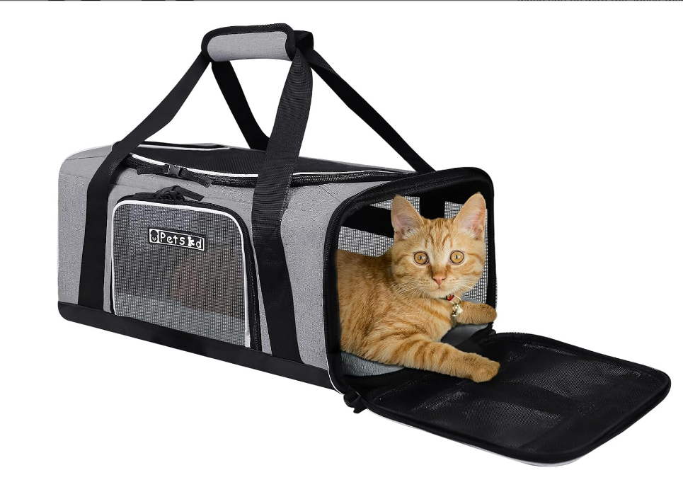 It is quite hard to find a travel pet carrier that is 8 inches high, as required by Frontier Airlines. However, many pet owners have reported that Frontier approved their 8.5-inch-high pet carriers. The Petskd top-expandable pet carrier is 17 inches long, 12 inches wide, and 8.5 high, which will definitely be accepted by Frontier. This carrier is recommended for pets that measure 15 inches in length, 10 inches in height, and weigh under 12 pounds. Made of waterproof, non-toxic, scratch-resistant polyester fabric material, this carrier has 3 openings and ventilation windows on 5 sides.