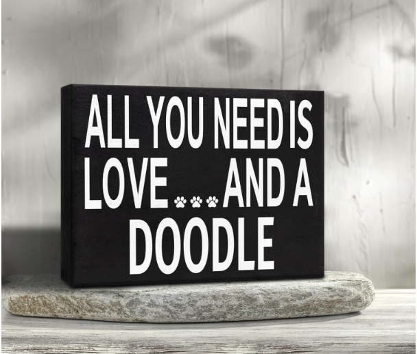This 8 x 6 x 1.5-inch wooden sign makes a unique gift for any Aussiedoodle dog mom or dog dad. It's a special decorative gift that's sure to make any doodle owner smile! It can stand on a tabletop surface like a desk, shelf, or counter and is the perfect room decor accent to brighten up living rooms and bedrooms. What's more, the sign also features a keyhole slot for wall hanging.